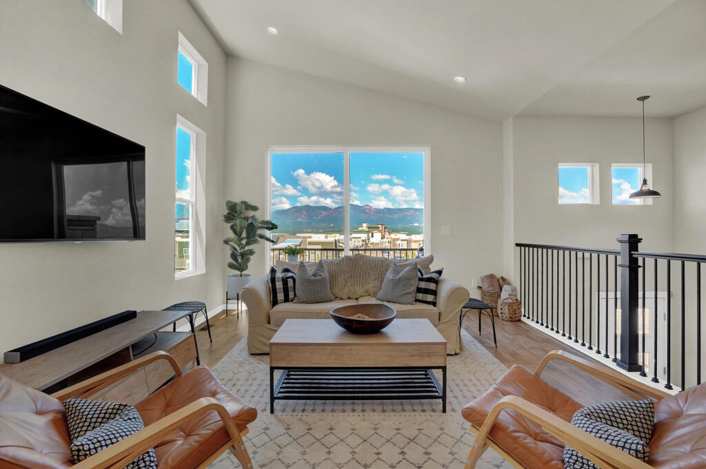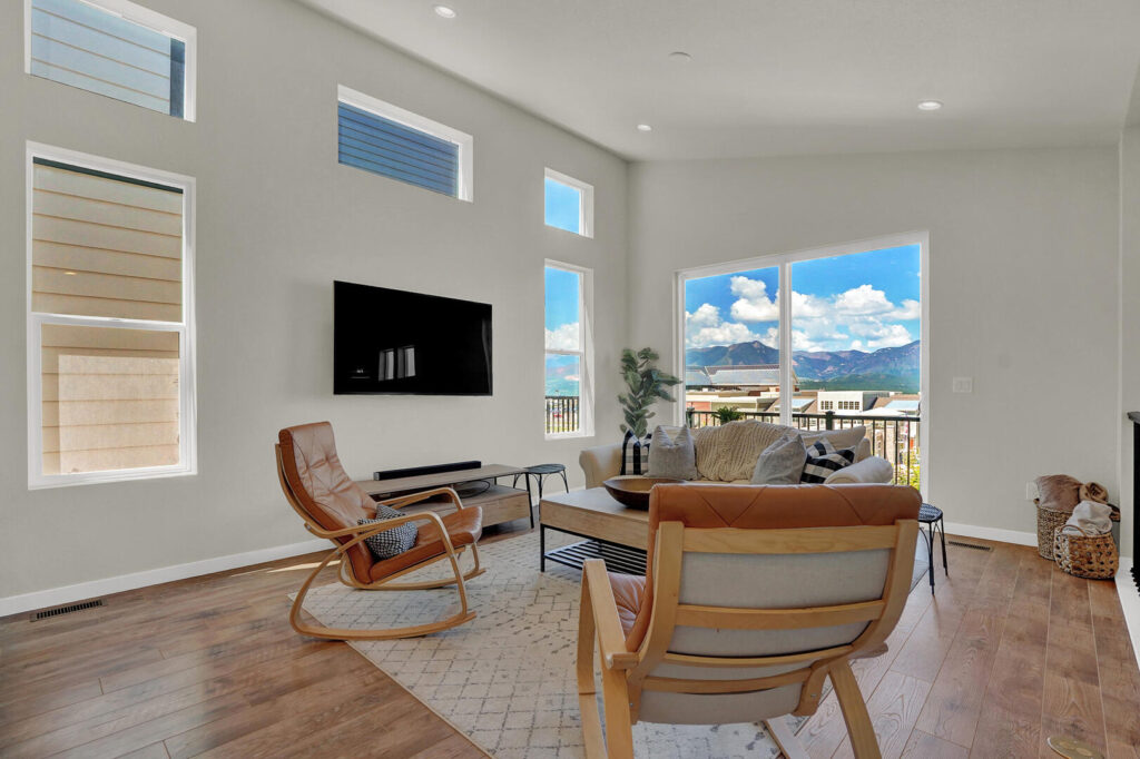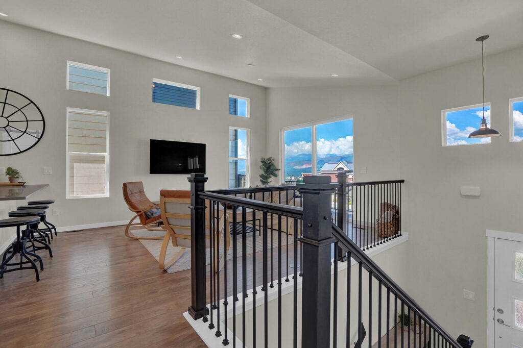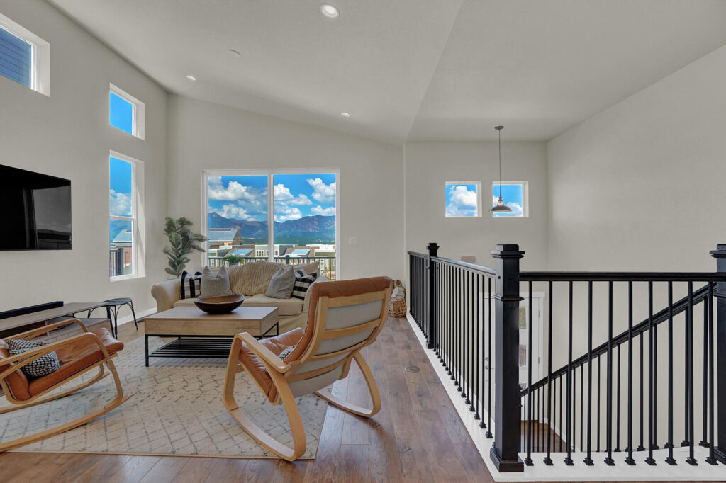 | Colorado Springs Living is Redefined Here! This Customized Modern Midtown Home located at 11314 Modern Meadow Loop has a Loft-Like Feel w/ Unobstructed Mountain Views of Pikes Peak & the Entire Front Range. Google Smart Home Ready – operate lights, music, & more by your phone or voice control. You’ll love the dramatic architectural lines that draw you into the space where EVERY sq. foot of space is intentional, intelligent, & lives LARGE! Upstairs, the open great open room has vaulted ceilings & bright windows that show off those stunning views even out to the private deck. The WOW factor continues in the customized kitchen. The entire back wall has been tiled from base cabinet to ceiling, becoming the backdrop to open shelving made from 180-year-old reclaimed wood from the mountains. Enjoy Samsung appliances, including a gas range for the cook and upgraded quartz countertops and a large counter w/ barstool seating, & a pantry w/ a modern barn door. Oh, and trash take-out is made easy here! (Check out the video on the v-tour ink for a customized trash chute invention at the kitchen window). The master bedroom has five windows & an en-suite bath. The bath also has a double vanity, custom framed mirror, quartz countertop w/ double vanity sink, & a walk-in closet. Downstairs, the 2nd bedroom can double as a great streaming room (enjoy CAT5 & CAT6 plus fiber optics throughout). The full bath has upgraded tile floors & shower surround plus a quartz countertop. Enjoy customized light fixtures, A/C, plus extra storage in the mechanical room. The two-car garage allows for extra storage plus there’s water in the garage. Enjoy an open green space & area for community gatherings just across the street from the driveway. The Inner-City design lives up to the surroundings w/ 3 nearby Coffee Shops, New Restaurants, Prime Shopping, & More. Art, Creativity, Intelligence in Home Innovation & Hospitality Perfectly Meet Here! This rare find located at 11314 Modern Meadow Loop will inspire you to live the life you have always wanted to have in Colorado! |