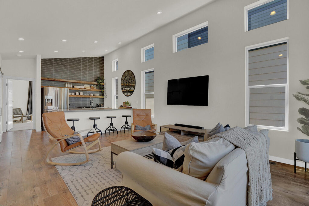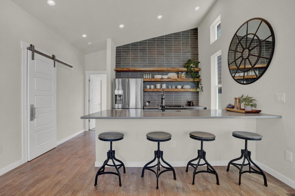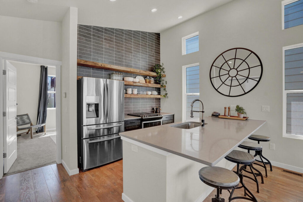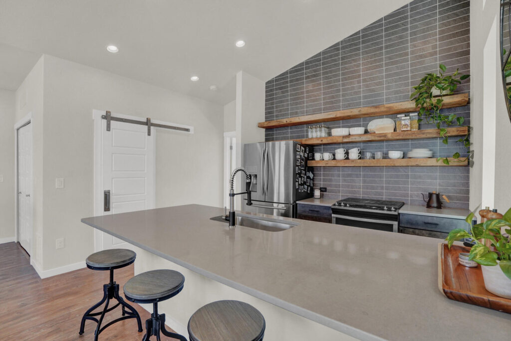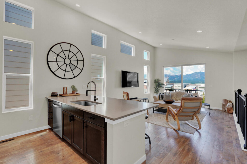 | Colorado Springs Living is Redefined Here! This Customized Modern Midtown Home located at 11314 Modern Meadow Loop has a Loft-Like Feel w/ Unobstructed Mountain Views of Pikes Peak & the Entire Front Range. Google Smart Home Ready – operate lights, music, & more by your phone or voice control. You’ll love the dramatic architectural lines that draw you into the space where EVERY sq. foot of space is intentional, intelligent, & lives LARGE! Upstairs, the open great open room has vaulted ceilings & bright windows that show off those stunning views even out to the private deck. The WOW factor continues in the customized kitchen. The entire back wall has been tiled from base cabinet to ceiling, becoming the backdrop to open shelving made from 180-year-old reclaimed wood from the mountains. Enjoy Samsung appliances, including a gas range for the cook and upgraded quartz countertops and a large counter w/ barstool seating, & a pantry w/ a modern barn door. Oh, and trash take-out is made easy here! (Check out the video on the v-tour ink for a customized trash chute invention at the kitchen window). The master bedroom has five windows & an en-suite bath. The bath also has a double vanity, custom framed mirror, quartz countertop w/ double vanity sink, & a walk-in closet. Downstairs, the 2nd bedroom can double as a great streaming room (enjoy CAT5 & CAT6 plus fiber optics throughout). The full bath has upgraded tile floors & shower surround plus a quartz countertop. Enjoy customized light fixtures, A/C, plus extra storage in the mechanical room. The two-car garage allows for extra storage plus there’s water in the garage. Enjoy an open green space & area for community gatherings just across the street from the driveway. The Inner-City design lives up to the surroundings w/ 3 nearby Coffee Shops, New Restaurants, Prime Shopping, & More. Art, Creativity, Intelligence in Home Innovation & Hospitality Perfectly Meet Here! This rare find located at 11314 Modern Meadow Loop will inspire you to live the life you have always wanted to have in Colorado! |