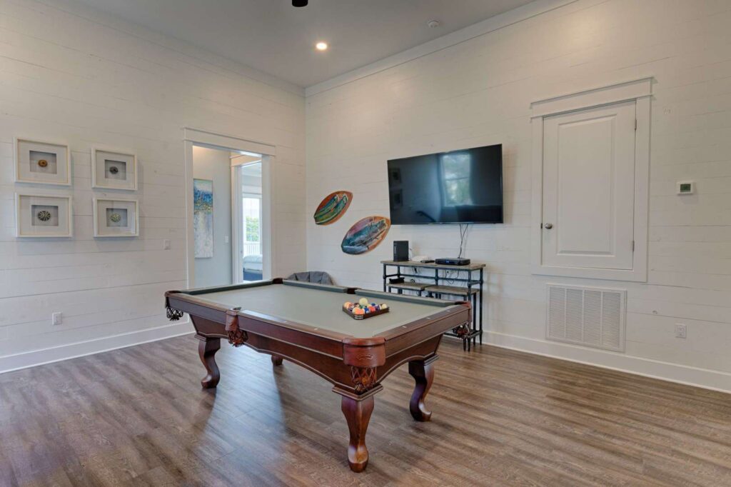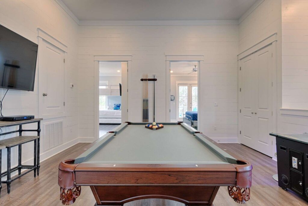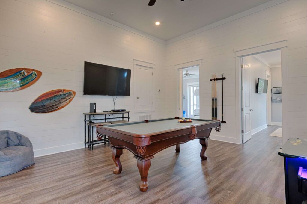 With 6 bedrooms and 6 baths there’s plenty of room and sleeping for all. A high end appointed game room features a custom built billiards table and a 60 game retro cocktail arcade machine that will occupy the kids on a rainy day or even the adults for a bit of nostalgia.