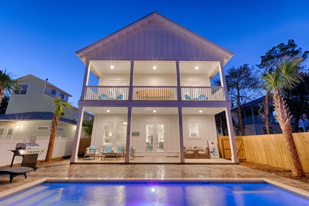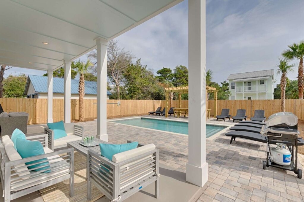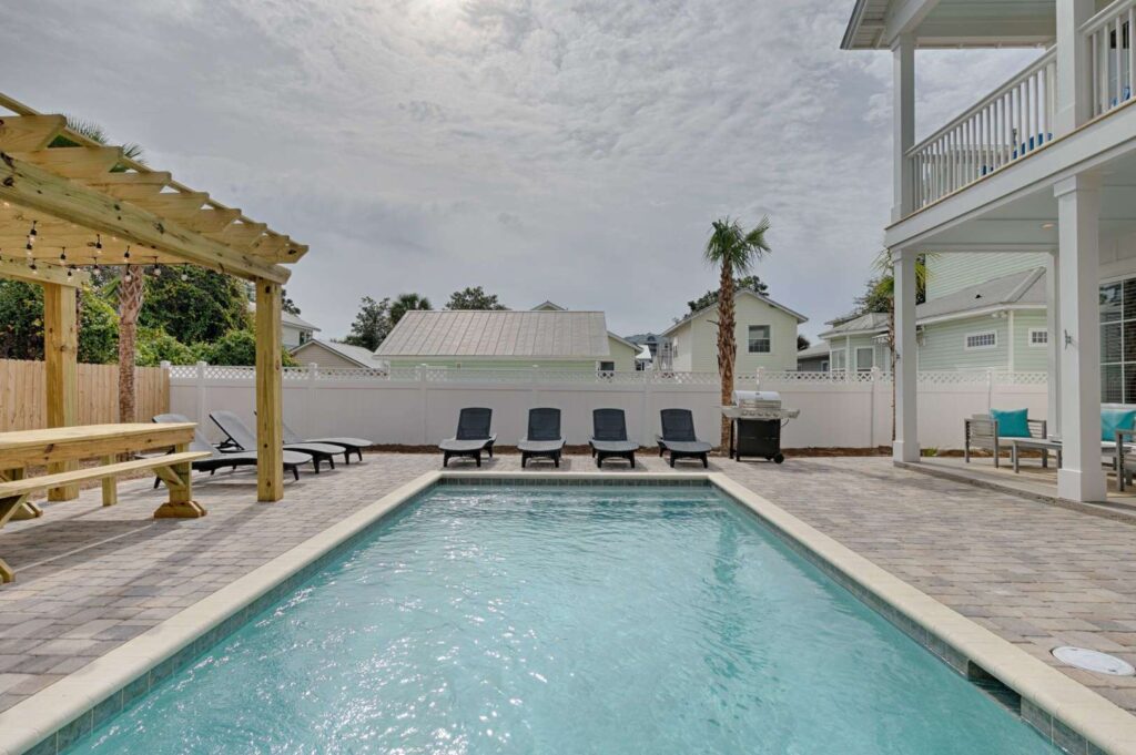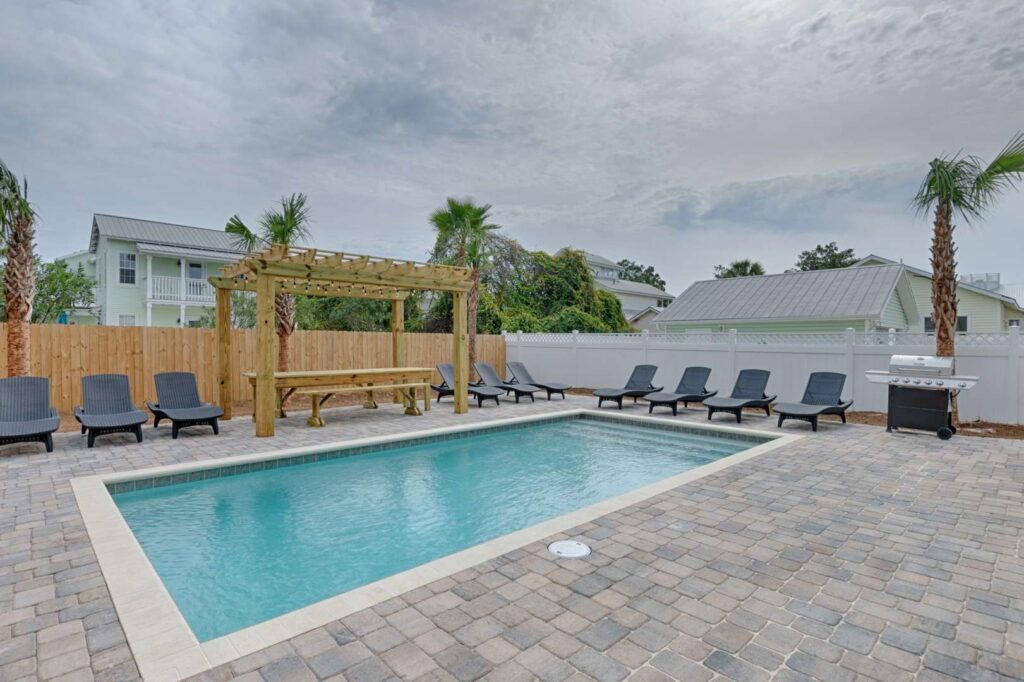 Host a wedding in the stunning backyard or just grill out for the family around the 30×15′ salt water pool (heating optional) with luxury comfort inspired seating and amenities. You’re walking distance to everything Destin has to offer from Whole Foods Market to Destin Commons where you can enjoy shopping, dining, movies and seasonal themed parties and parades. Make Aqua Viva your family vacation for years to come