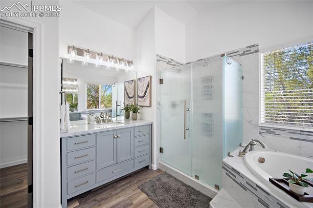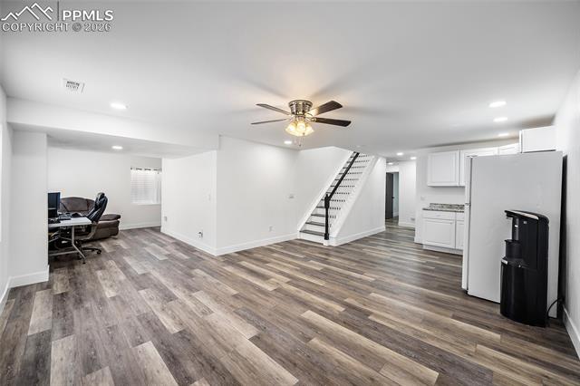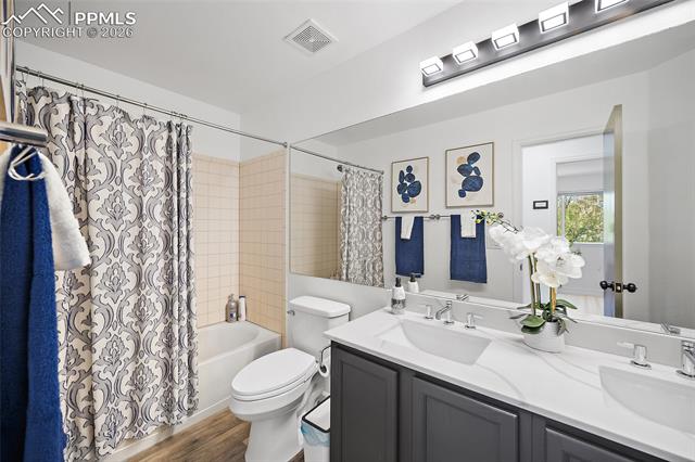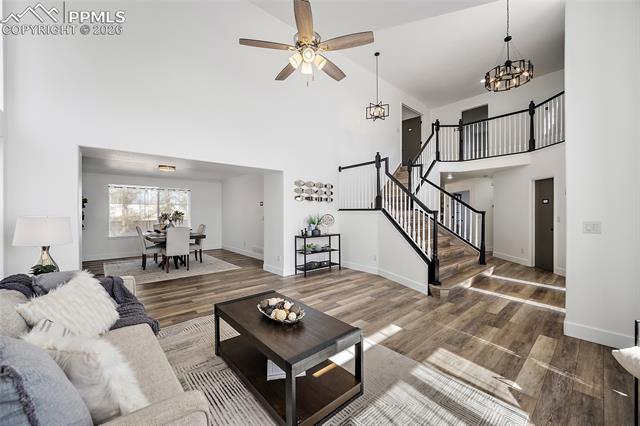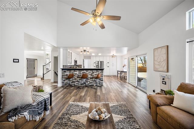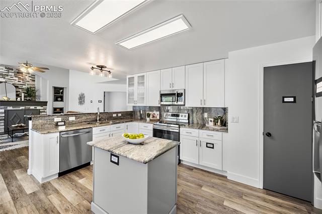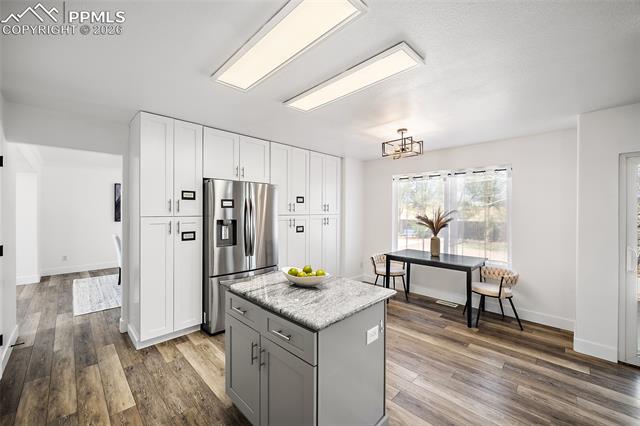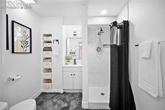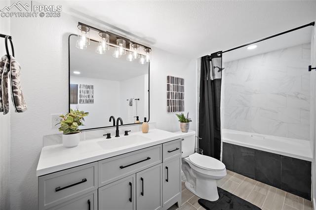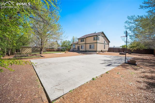 gatherings. Inside, this home is massive in the best way. With 4,700+ square feet, 6 true bedrooms all oversized with walk-in closets and 5 bathrooms, there’s no shortage of space to actually live your life. Whether you need room for a large household, guests, or multi-generational living, this layout just works. This home is top to bottom remodeled with the exterior freshly painted as well. The main level includes a flex space perfect for an office, playroom, or whatever you need it to be. The kitchen has been updated with soft-close cabinets, granite countertops, and stainless steel appliances, and opens up to spacious living areas that are ideal for hosting or just spreading out. Enjoy the gas fireplace for cozy evenings. Upstairs, the primary suite features an updated 5-piece bath, and throughout the home you’ll notice upgraded flooring, modern lighting, and thoughtful touches. Downstairs, the fully finished basement includes a kitchenette, second laundry area, and even more room to use however you want. And the systems are already handled. Two furnaces, two A/C units, two water heaters with 100 gallons total, whole-home water filtration, and a new roof in December 2023. This home packs a PUNCH! The outside of this home truly shines as well. A large stamped concrete patio with built-in lighting, multiple concrete pads, two storage sheds, and your own private basketball court make this backyard set up for both relaxing and entertaining. There’s even an automatic pet door for convenience. All of this with a quick commute to the airport, Fort Carson, Peterson, and Schriever, plus close access to everyday shopping, dining, and schools with Marksheffel just outside of the neighborhood. If you’ve been looking for a home with real space, real function, and room to grow, this is it.