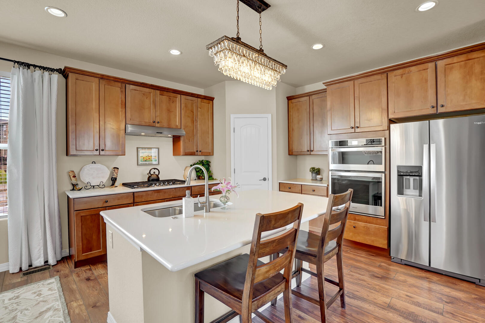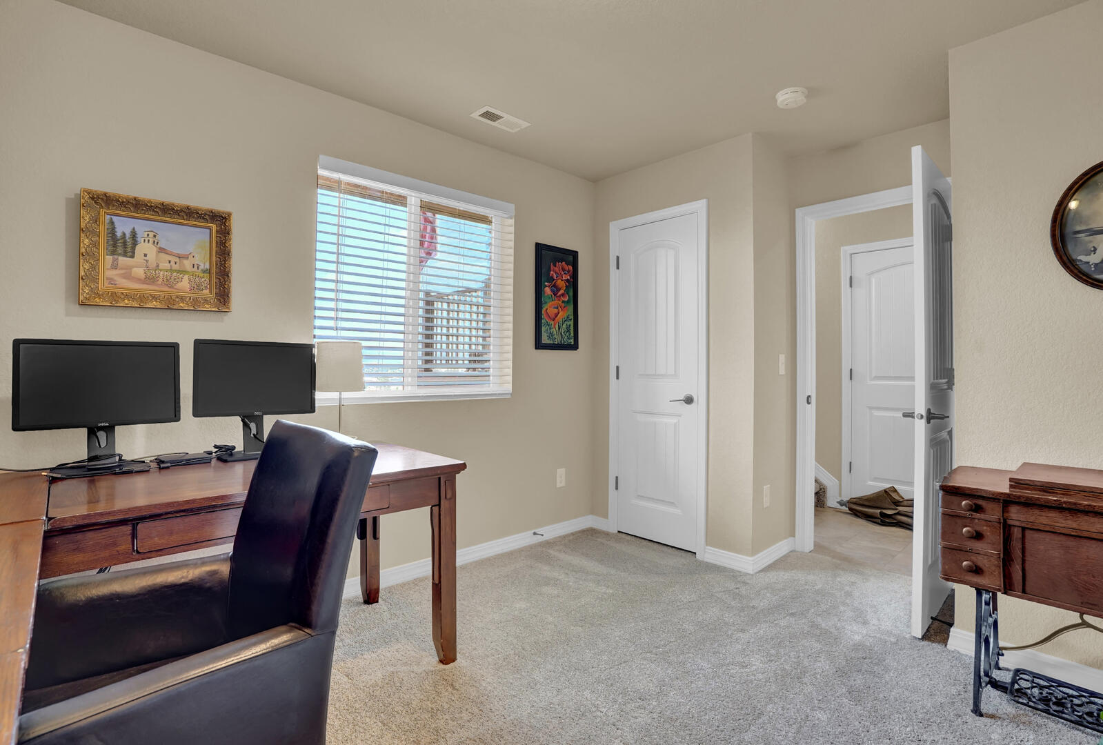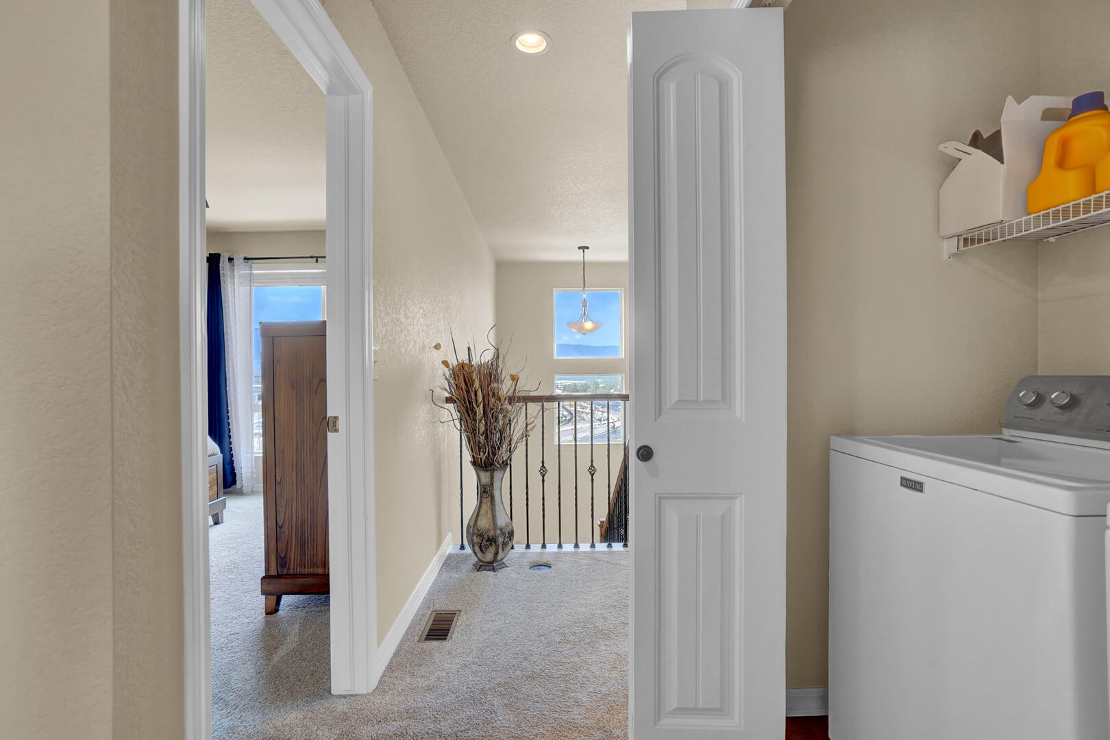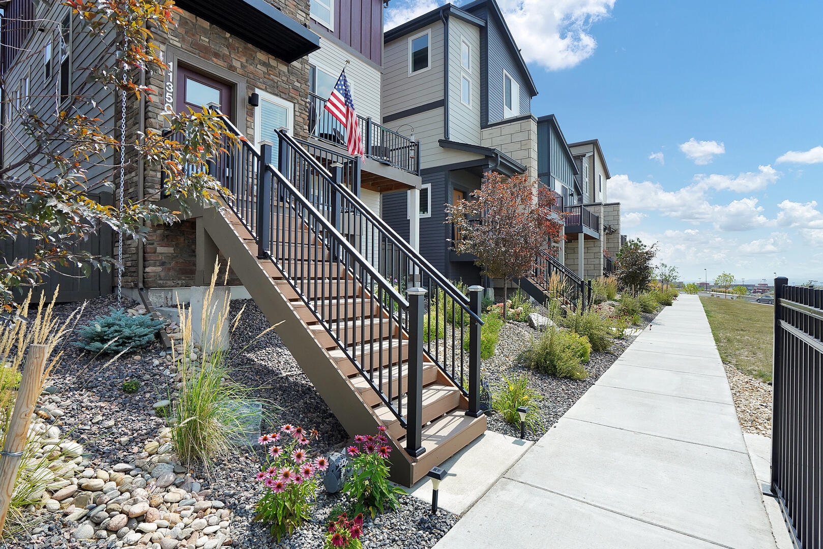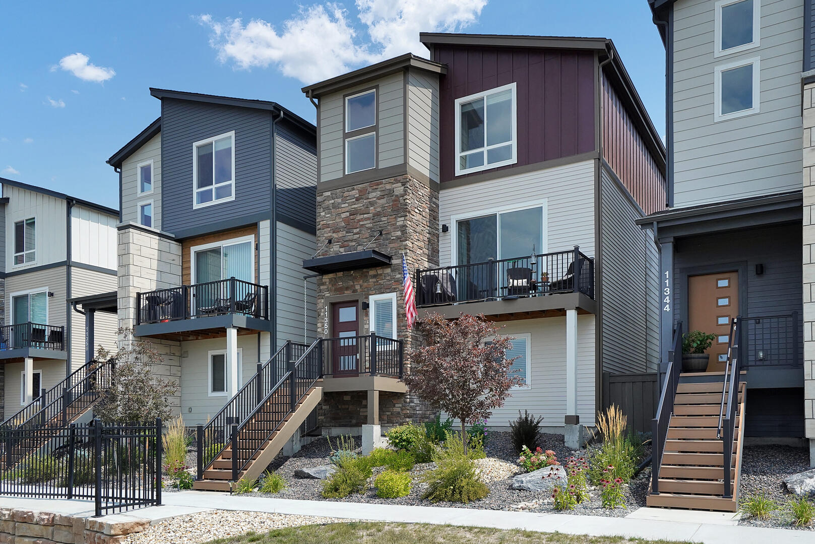 Inside: The fun factor begins with the modern, open design. The 3-Level home has luxurious LVP flooring, upgraded bathrooms, quartz countertops, a gourmet kitchen w/ island, custom light fixtures, plus an Alexa smart home system that controls the radio, lights, and garage door - all activated by your phone, plus there is an Echo system for the upstairs area. The base level of the home features a 2-car garage and a bedroom that doubles as a highly functional office w/ views. The next level of the home features an open great room design w/ the upgraded LVP flooring and a walkout to the private composite deck that showcases those breathtaking views. Back inside. the kitchen has upgraded cabinets, a separate island, a gas range, and a large eat-in dining space. The upper level of the home has two bedrooms. The Owner's Suite is complete with an electric fireplace and a private bathroom & THOSE VIEWS are out of the Owner's bedroom window. The secondary bedroom has access to a separate full bathroom. If you are looking for a home with just the right amount of useful square footage with a modern design that will ignite your senses, you have found it here! You will love the access to the green space and picnic area across the street from the property. This is an amazing new way to live in Colorado Springs! You don't have to maintain a yard. Close access to 1-25 and commutable to both Colorado Springs and Denver.