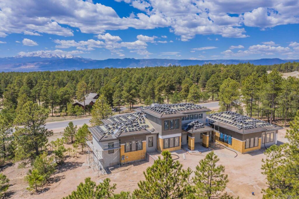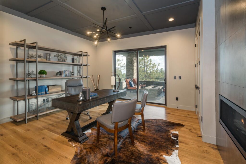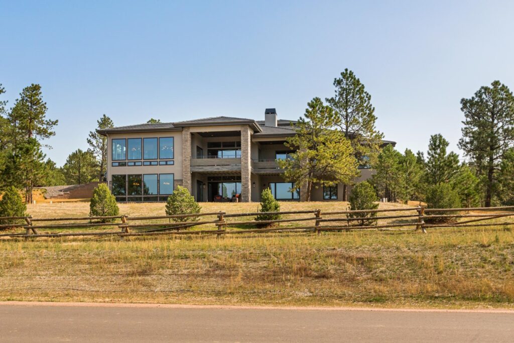This Colorado Mountain Contemporary Design was influenced by Frank Lloyd Wright’s Prairie Style, and is located on 3.14 sprawling & treed acres in coveted Flying Horse North — an incredible, quiet, exclusive location just north of Colorado Springs. There are almost too many notable design elements to mention here, but a few stand out, including the captivating interior design and the wall of glass doors in the open great room that showcase the unobstructed views of Pikes Peak. The kitchen features a 48″ commercial GE Monogram Gas Range w/ 2 ovens, a third oven, island, custom cabinetry, quartz countertops, a spacious walk-in pantry, plus a Butler’s Pantry that includes a Miele Coffee Maker & Espresso Machine. The open living room with beamed ceiling, the private study with fireplace and closet; the master suite with walk-out deck and private hot-tub, the master bath with free-standing tub, custom shower, dual vanity — all designed with exceptional care and modern, custom luxury — this home is a living piece of art.